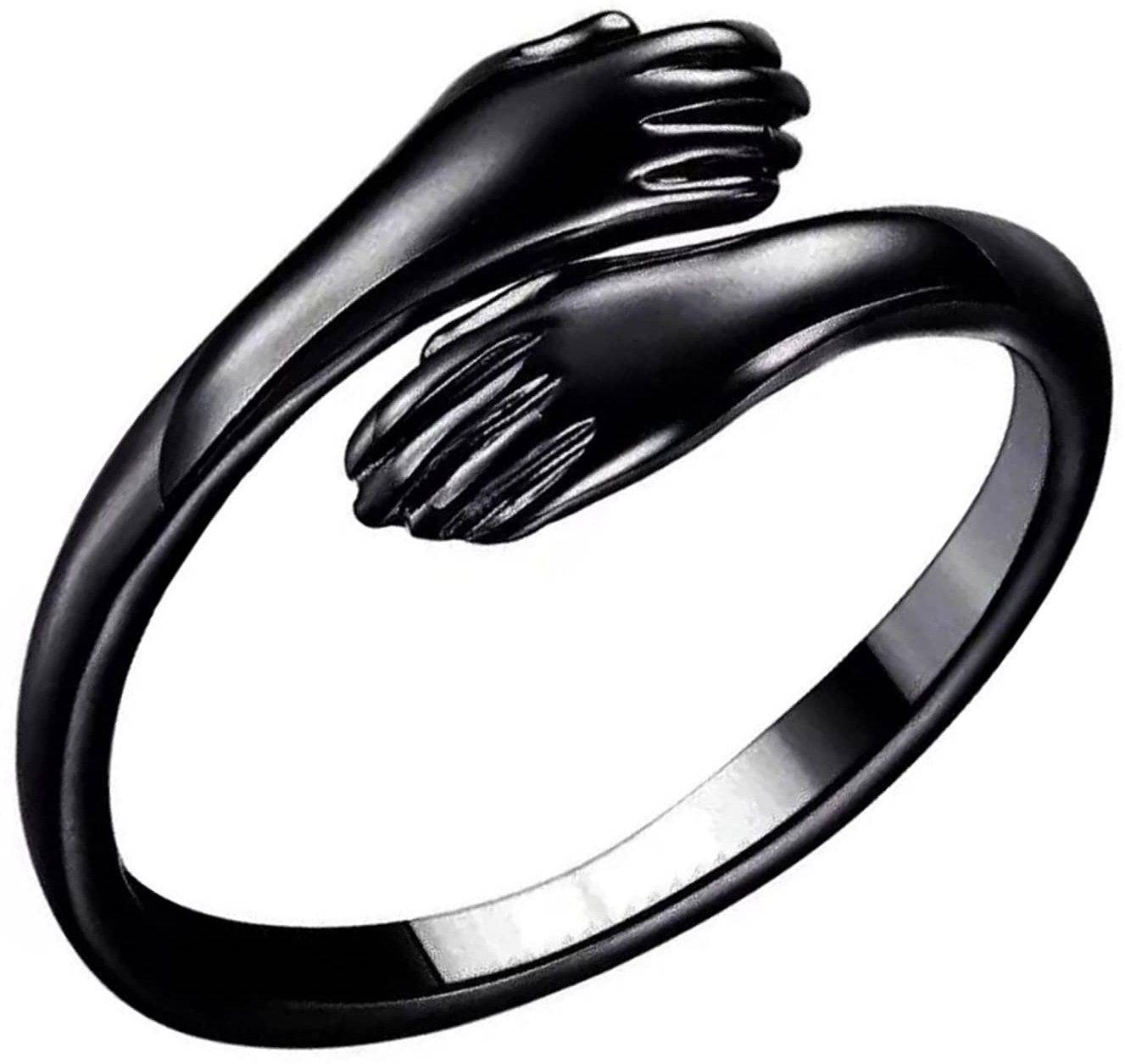 Trending Black Color Stainless Steel Stylish Love Forever Valentine's Day Special Romantic Love Couple Embrace Statement Promise Anniversary Adjustable Hand Hug Me Thumb Finger Ring For Women's And Girl's (Free Size)