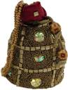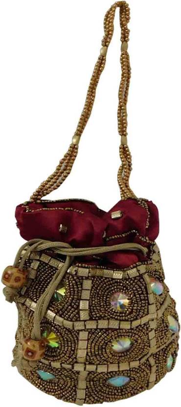 This gorgeous potli bag has heavy stone and beads works all over and made by fine quality silk. It comes with a long gold string too for carrying on shoulder. Will go well with both Indian traditional wear for occasions like weddings, anniversary etc.