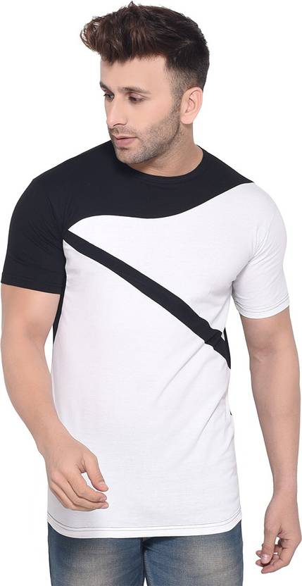 Lawful Casual Colorblock Men Round Neck White, Black T-Shirt