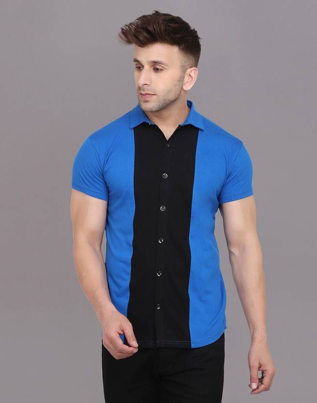 GEUM Men Solid Casual Black, Blue Shirt