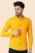 Men Regular Fit Solid Mandarin Collar Casual Shirt