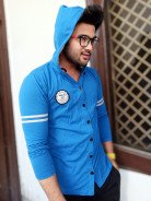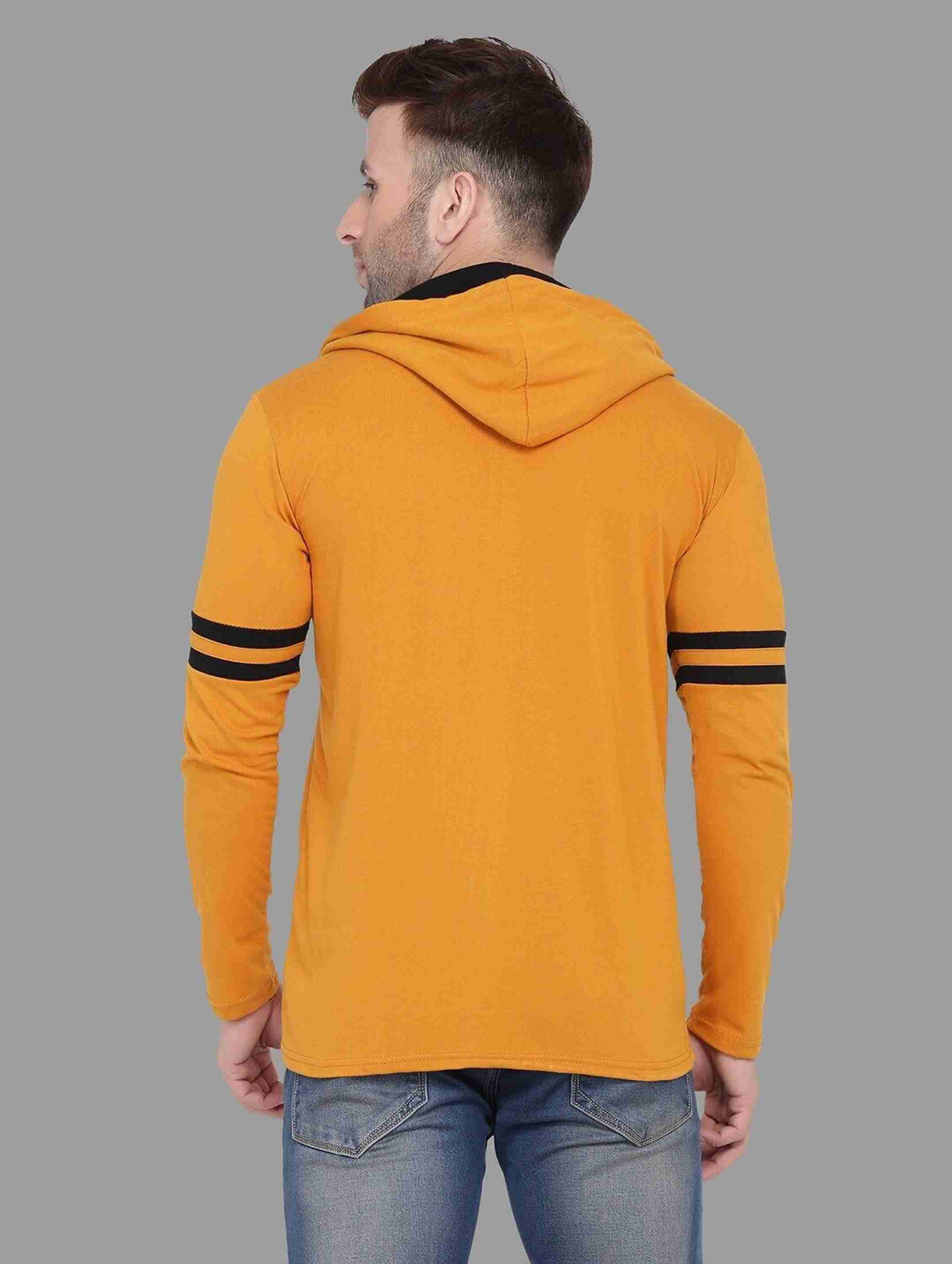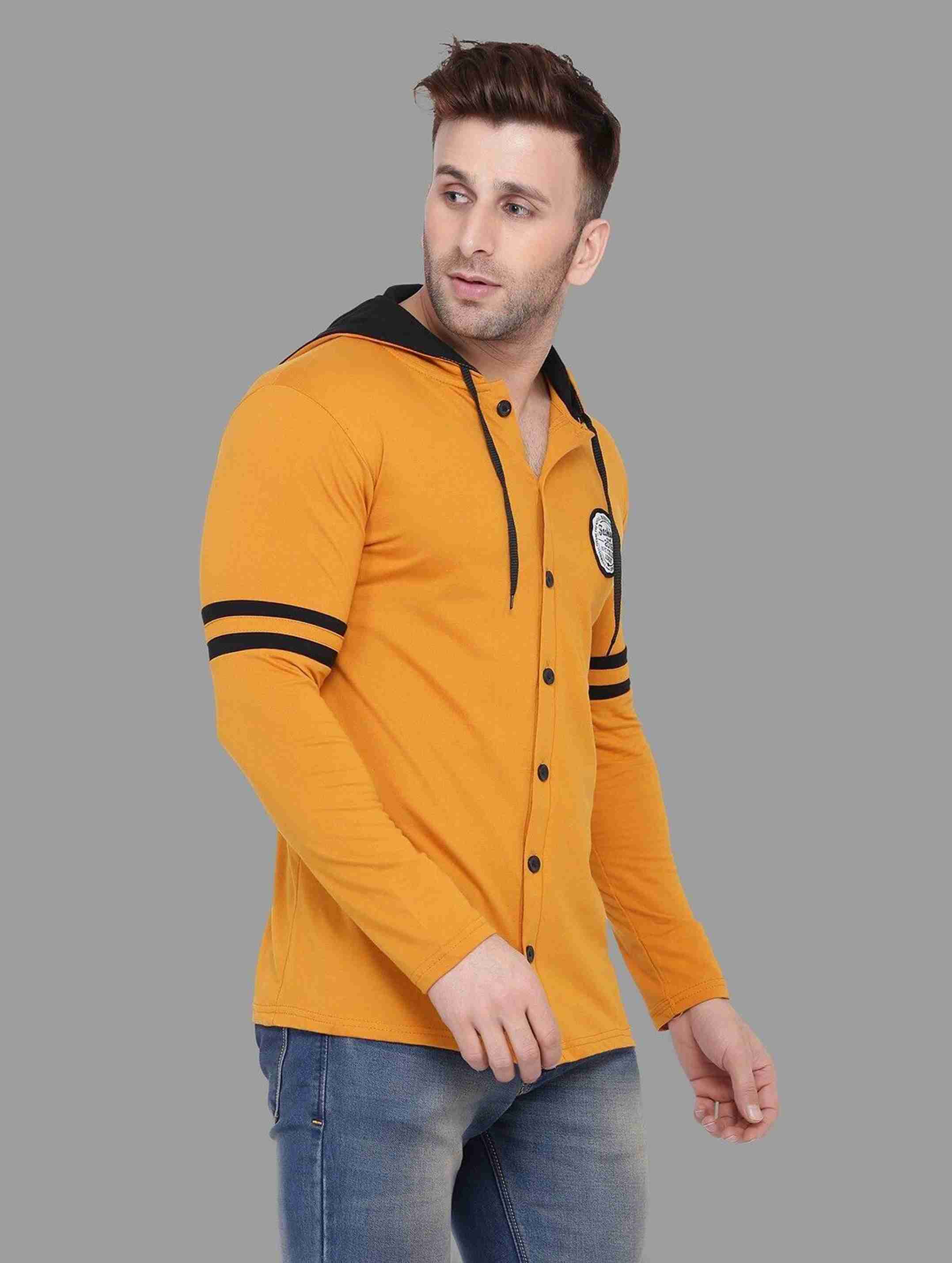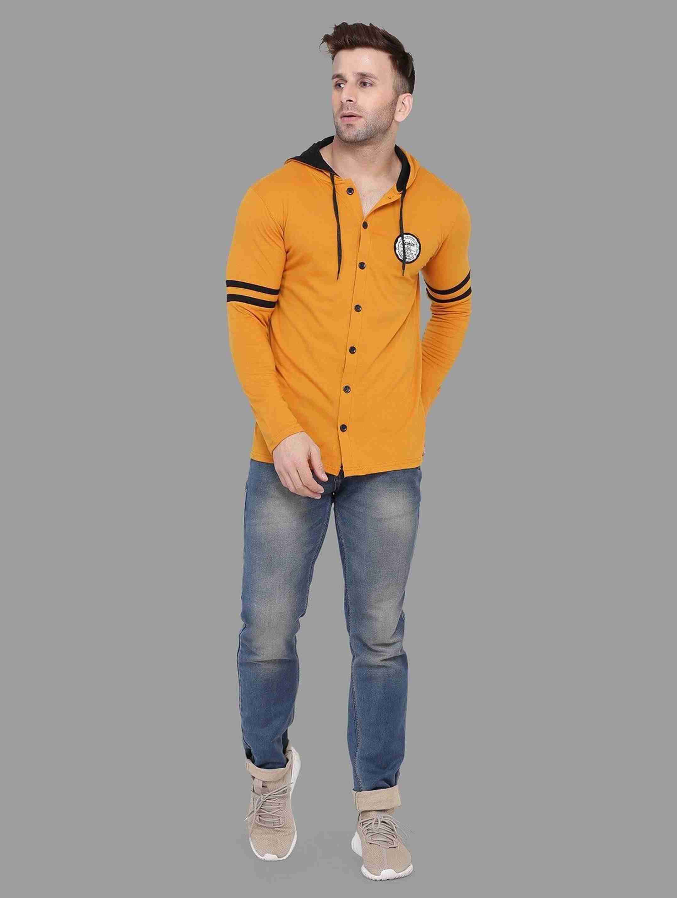 Add a bold touch to your wardrobe with this stylish hooded shirt from TFurnish. Featuring a slim-fit design, full sleeves with sporty stripes, and a trendy chest print, this shirt is perfect for men w...more