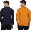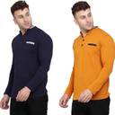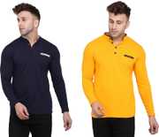 Pack of 2 Men Solid Mandarin Collar Cotton Blend Dark Blue, Gold T-Shirt