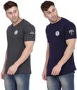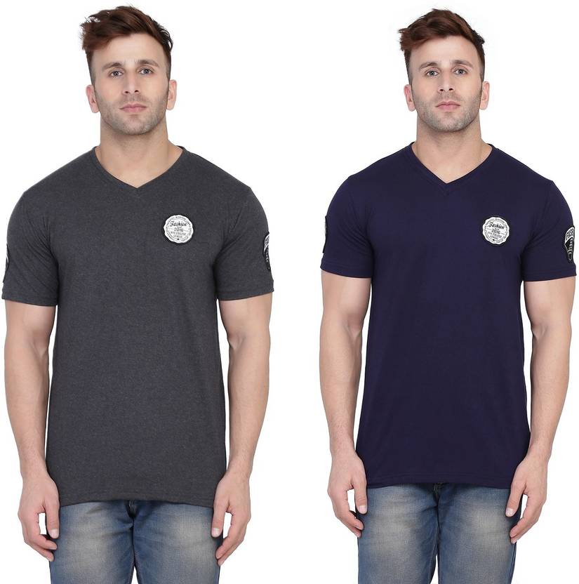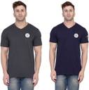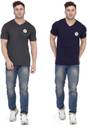 Lawful Casual Solid Men V Neck Dark Blue, Grey T-Shirt