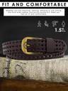 The Belt is a lighthearted way to add interest to your day-to-day dresses and denim. The very medium-slim design has a burnished self-textured shade that gives it an unprecedented look itself, so wear the formal semi-formal belts like this to the front and buckle to the back for a quirky-chic way to create the waist. Choose from smart black then head out for your morning coffee. this belt is long-lasting, lightweight, and made of Artificial Leather