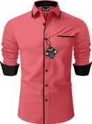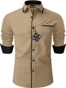The classic solid pattern with black stripes this shirt suitable for various settings, from office wear to weekend gatherings.