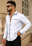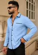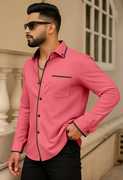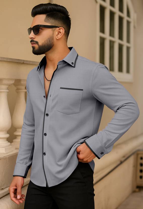 The classic solid pattern with black stripes this shirt suitable for various settings, from office wear to weekend gatherings.