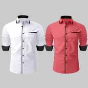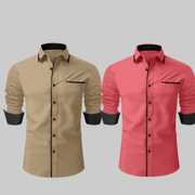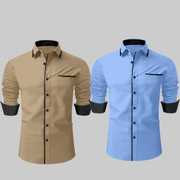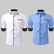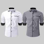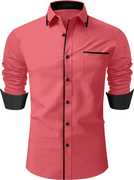 The classic solid pattern with black stripes this shirt suitable for various settings, from office wear to weekend gatherings.