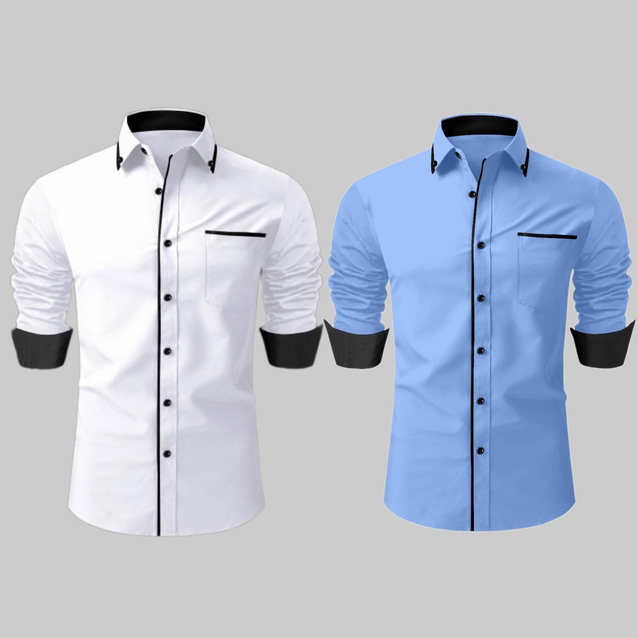 LAXBON Men Solid Casual Multicolor Shirt (Pack of 2)