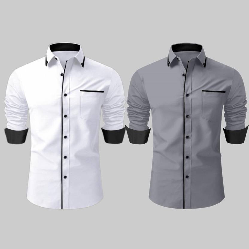 LAXBON Men Solid Casual Multicolor Shirt (Pack of 2)