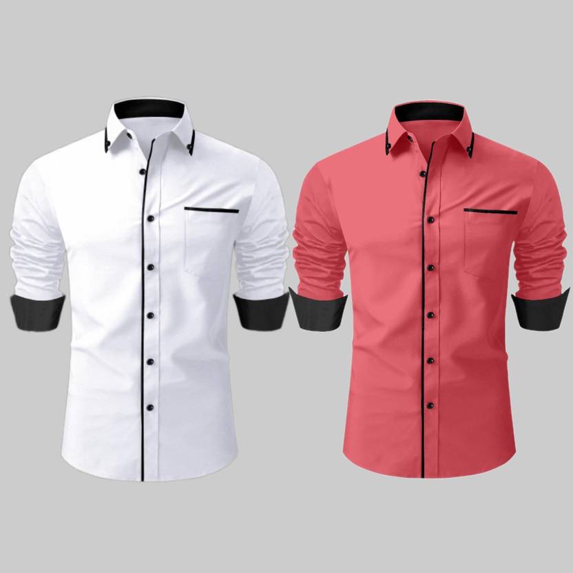 LAXBON Men Regular Fit Solid Slim Collar Casual Shirt (Pack of 2)