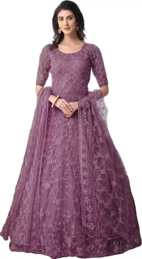 Georgette Stitched Anarkali Gown (Purple)