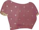 The matching blouse, tailored in smooth silk, comes in the same purple shade but features a contrasting printed pattern, offering a unique balance of tradition and contemporary style. The blend of embroidered motifs with zari detailing on the saree, paired with the chic printed blouse, makes this ensemble versatile and eye-catching.