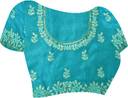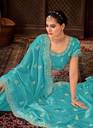 The saree is paired with a matching turquoise blue silk blouse, beautifully detailed with floral embroidery that complements the sareeās elegant design. Perfect for festive occasions or special events, this ensemble strikes the perfect balance between tradition and refined style.