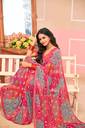Step into a world of modern charm with this blush pink georgette saree, featuring an all-over geometric design accentuated by multicolor circle prints. The playful pattern adds a lively edge to the soft, flowing silhouette, while the lightweight georgette fabric ensures a graceful and easy drape. A fine lace border outlines the saree, giving it a delicate and refined finish.