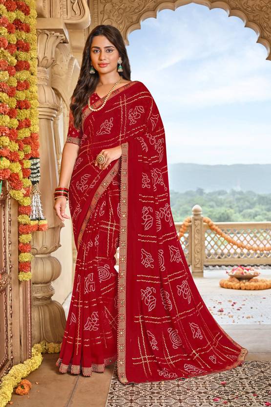 Laxmipati sarees Printed Bollywood Chiffon Saree (Red)