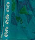Crafted from premium georgette fabric, the saree features a multi-layered geometric and floral abstract print in rich shades of teal, navy, and emerald green, creating a mesmerizing pattern across the drape. The combination of soft and deep tones adds dimension and visual depth, enhancing the natural flow of the georgette fabric. The saree’s pallu and pleats display subtle variations in pattern placement, ensuring that each fold highlights a unique design element. The entire saree is finished with a delicate zari lace border in metallic silver, featuring traditional paisley-inspired motifs that add a regal shimmer and elevate the saree’s overall look.