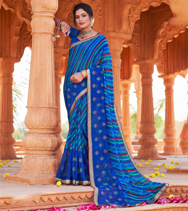 Laxmipati sarees Printed Daily Wear Chiffon Saree (Blue)