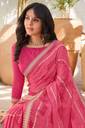 The look is completed with a pink chiffon printed blouse, ensuring a coordinated and stylish ensemble. Lightweight and elegant, this saree is perfect for festive occasions, cultural gatherings, and casual celebrations.