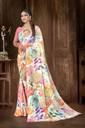 Step into timeless elegance with this Cream Georgette Saree, paired with a contrasting Pink Printed Blouse. Made from lightweight georgette for a graceful drape, the saree is adorned with an all-over floral print featuring multicolor floral motifs, adding vibrance and charm to its subtle cream base. The lively floral detailing makes it perfect for both casual and festive occasions.