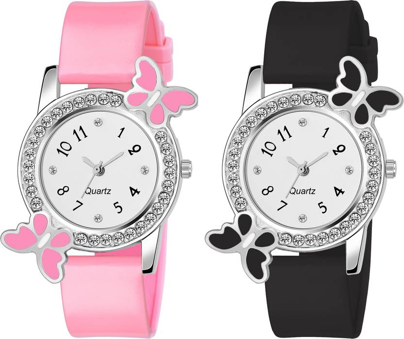 Analog Watch - For Girls Attractive butterfly Stylish Diamond Studded Pink & Black women combo Watch