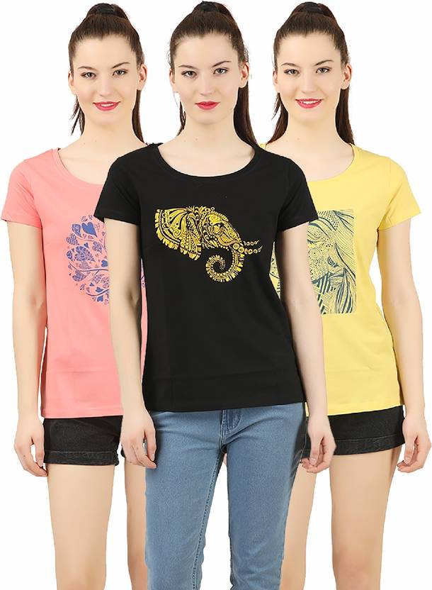 LAYA Printed Women Round Neck Multicolor T-Shirt