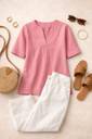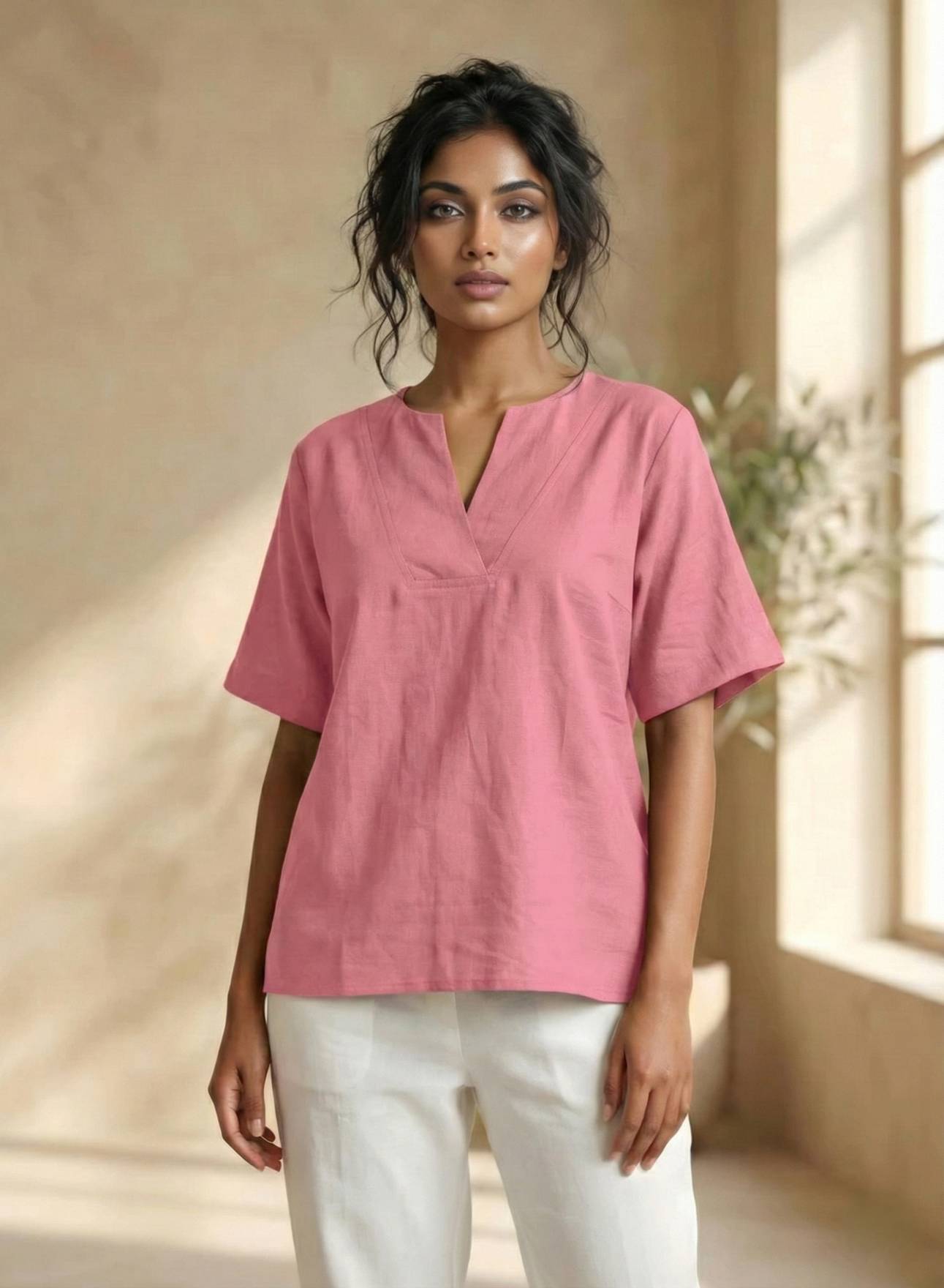 Upgrade your everyday wardrobe with this elegant pink solid top from LAYANSS. Crafted from premium rayon blend fabric, this top offers all-day comfort with a refined look. Featuring a flattering V-neck design and short sleeves, it pairs effortlessly with trousers, jeans, or palazzos. Ideal for casual outings, office wear, or daily styling, this versatile top delivers a perfect balance of comfort and sophistication.
