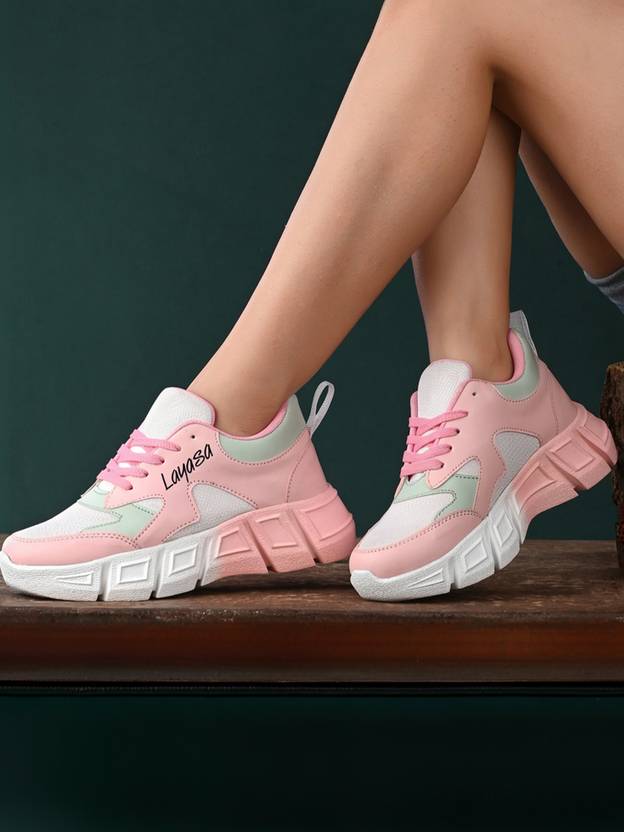 Layasa Colorblock Flat with Ultra Soft Cushion Lace-Up All-Day Comfort Sneakers For Women (Pink , 7)