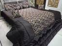 Laying Style Velvet Double King Sized Bedding Set (Grey, 1 Bedsheet,2 Pillow cover,2 Bolster,2 Cushions,1 Quilt)