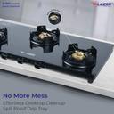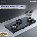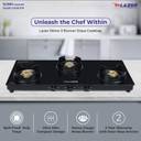Lazer Slimo Cooktop, Heavy Pan support, Heavy Brass Burner and Toughened Ultra Slim Glass Manual Gas Stove (3 Burners)