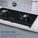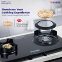 Make cooking your favorite time of the day with Lazer Slimo Gas Cooktop. Experience the superior form and functionality. The 6 mm thick black color tempered glass improves the durability of a gas stove and gives an elegant touch to your kitchen. An ultra-slim compact design makes it a proper pick for contemporary kitchen aesthetics because it provide more countertop space. It has high pan support that commits to safety, stability, and uniform heat distribution during your kitchen endeavors. Leak test at 14.5 PSI air pressure withstands normal operating conditions. This feature shields against potential issues and assures reliability with critical quality control measures. Our spill-proof drip trays safeguard against spills and dirt. It helps in maintaining hygienic conditions and offers a mess-free kitchen. Its heavy gauge brass burner combines power and resilience that withstand rigorous use and high temperature. It also provides a stable flame for versatile cooking needs. The sturdy engineered plastic knob fitted in the Lazer Slimo gas cooktop featured long-lasting performance, comfortable grip, and effortless rotational flexibility. Heavy gauge thick mixing stainless steel tube is one of the main traits of the Lazer Slimo gas Cooktop that has robust construction, superior corrosion resistance, minimized vibration, and enhanced durability. Its high thermal efficiency enables rapid and uniform heating for quicker cooking and energy saving. Lazer Slimo gas cooktop comes under 2,3, and 4 burner range with ISI certification.