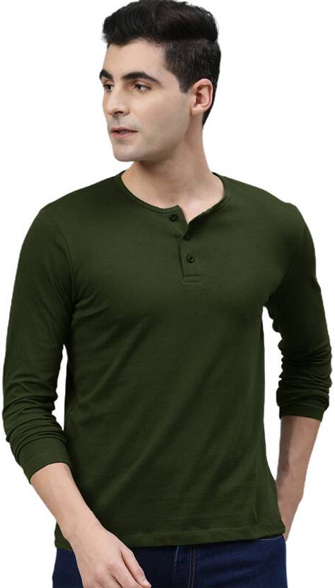 LazyChunks Solid Men Henley Neck Green T-Shirt