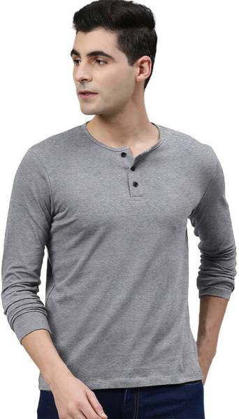 LazyChunks Solid Men Henley Neck Grey T-Shirt