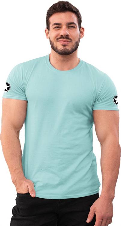 LazyChunks Solid Men Round Neck Light Blue, Yellow T-Shirt