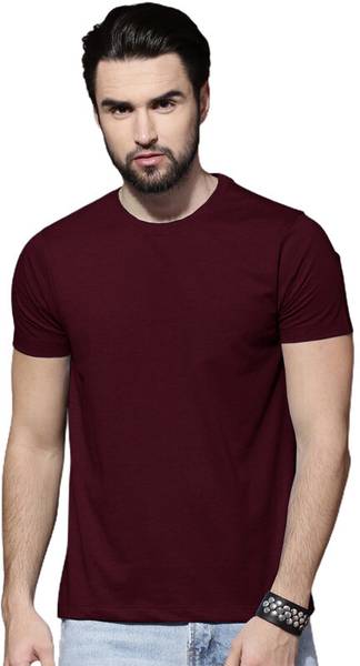 LazyChunks Solid Men Round Neck Maroon T-Shirt