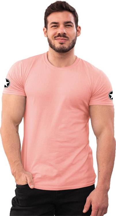 LazyChunks Solid Men Round Neck Pink T-Shirt