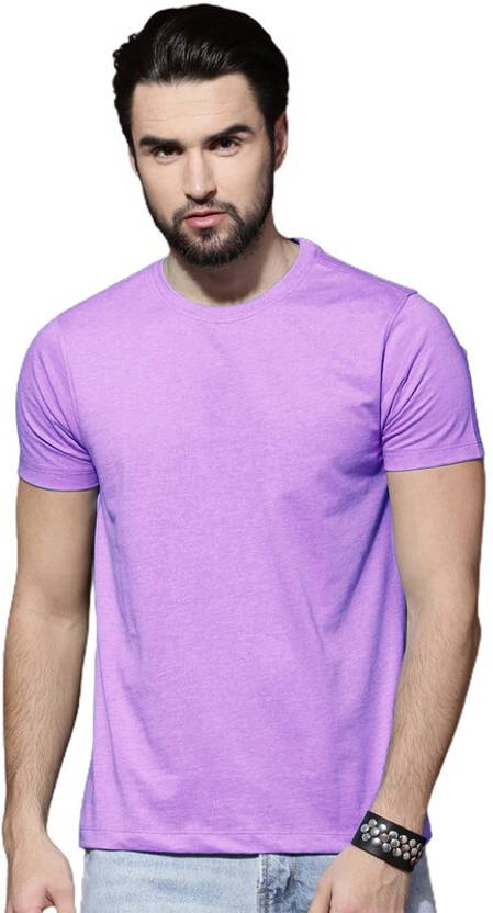 LazyChunks Solid Men Round Neck Purple T-Shirt