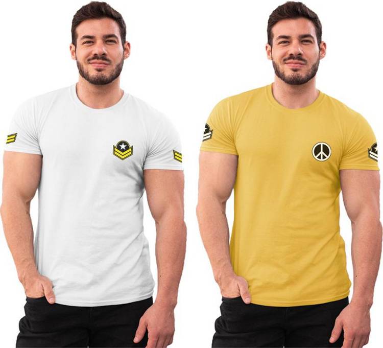 LazyChunks Solid Men Round Neck White, Yellow T-Shirt