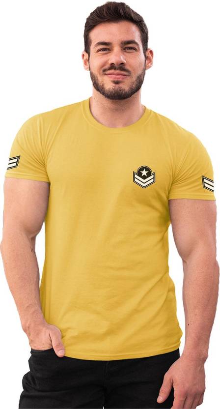 LazyChunks Solid Men Round Neck Yellow T-Shirt