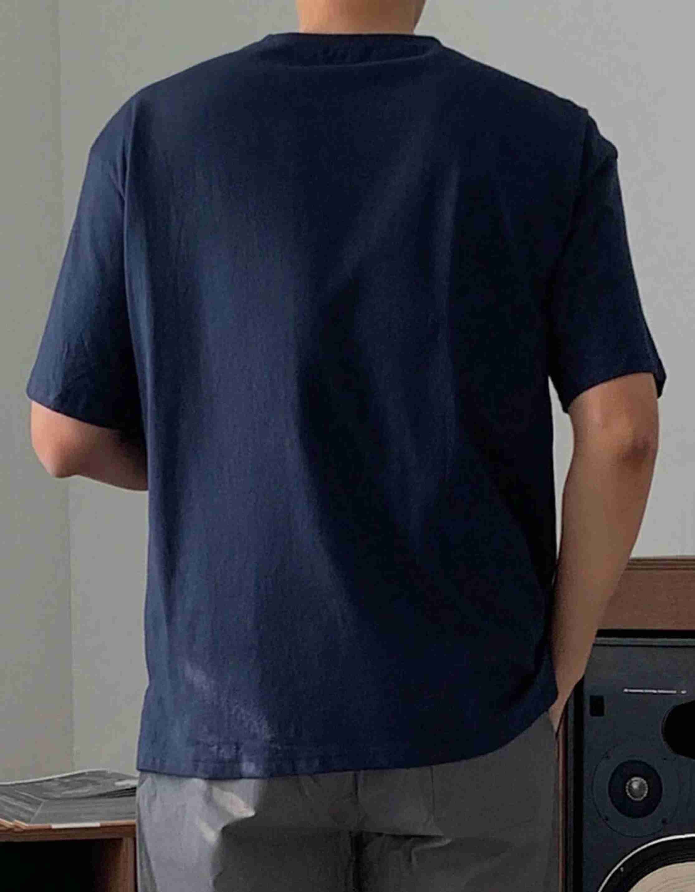 Men Solid Round Neck Pure Cotton Blue T-Shirt
