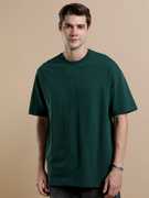 Men Solid Round Neck Pure Cotton Blue T-Shirt