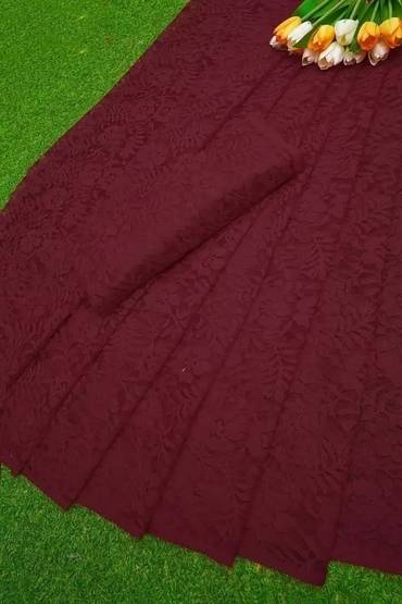 Plain georgette is a lightweight, sheer fabric with a slightly crinkled texture. It is made from silk or synthetic fibres and is known for its graceful drape and beautiful finish. Georgette is often used in women's clothing, especially for flowy dresses, blouses, and scarves. It is comfortable to wear and adds a touch of elegance to any outfit.