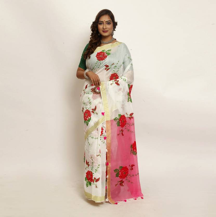 Bengali, Zari border, Cotton Handloom, Traditional collection, Floral prints