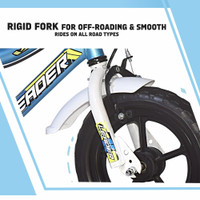 Crafted from robust carbon steel, this bicycle is built to withstand the rigours of active play and countless adventures. This innovative bicycle comes with EVA tyres, which are lightweight and low maintenance. These EVA tyres are not only durable but also offer superior traction and shock absorption, providing a smooth and reliable ride over various terrains.