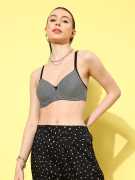 LEADING LADY Leading Lady Women's Printed Lightly Padded T-Shirt Bra Women T-Shirt Non Padded Bra (Green)