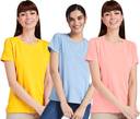 Leafoo Solid Women Round Neck Multicolor T-Shirt