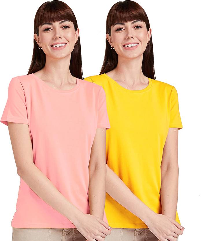 Leafoo Solid Women Round Neck Multicolor T-Shirt