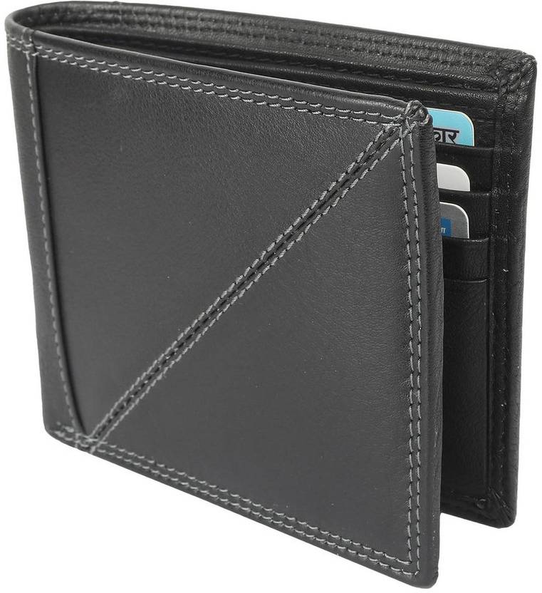 Men Black Genuine Leather RFID Wallet 8 Card Slot 2 Note Compartment: Leather_3020