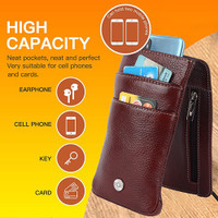 LEATHER LEAF 100% Genuine Leather Holster Pouch Case with Belt Loop and Clip | Waist Bag Belt Pouch for Mobile Phone Upto 6.5 inches, Tools, Card, Powerbank Holder (Brown)