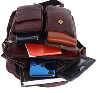 Crafted from genuine leather, this men's sling bag ensures durability and quality. This bag is designed to last, maintaining its aesthetic appeal and functionality over prolonged use. The leather material offers a timeless look that seamlessly integrates into various settings. Whether for professional or casual use, the quality of leather serves as a testament to the bag's reliability.